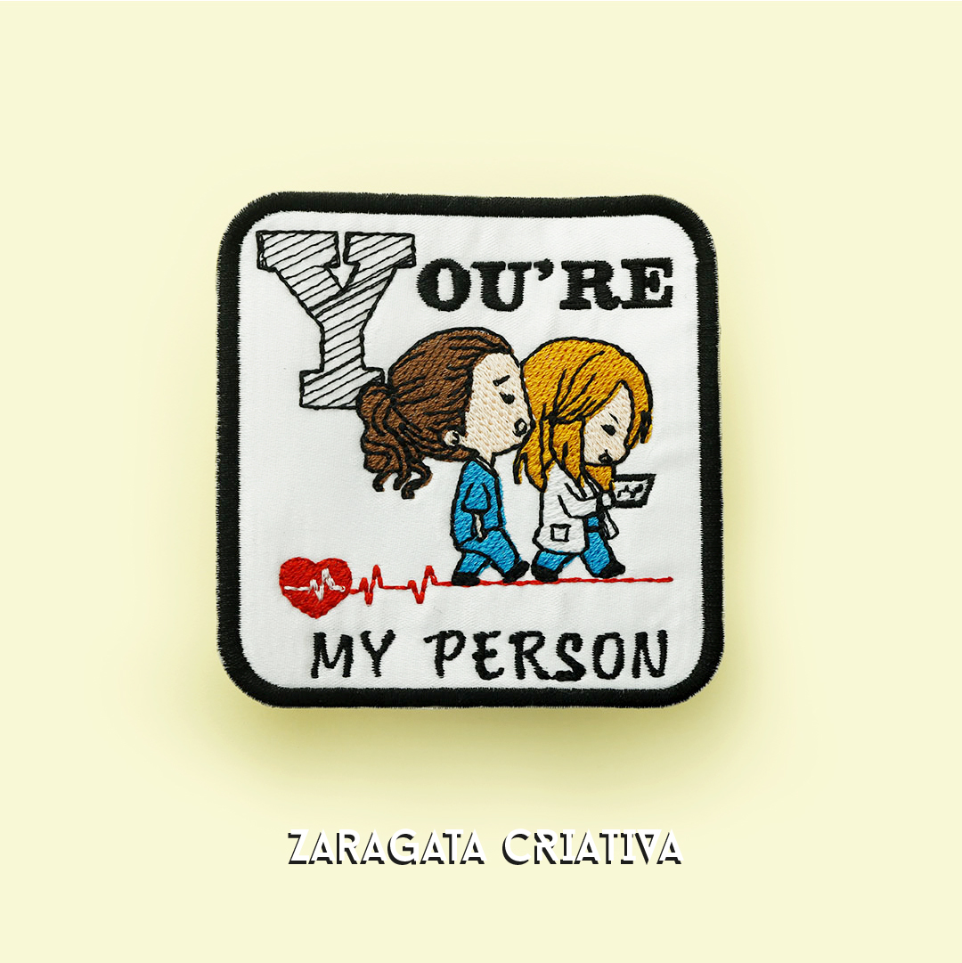Este emblema bordado com a frase icónica "You're my person" da série Anatomia de Grey, é produzido com materiais de alta qualidade e é uma forma discreta e elegante de mostrar o teu amor pela série.
