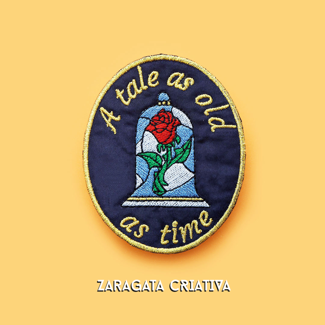 Apresentamos o Emblema Bordado “Bela e o Monstro”, perfeito para fãs de histórias clássicas e cultura pop.
