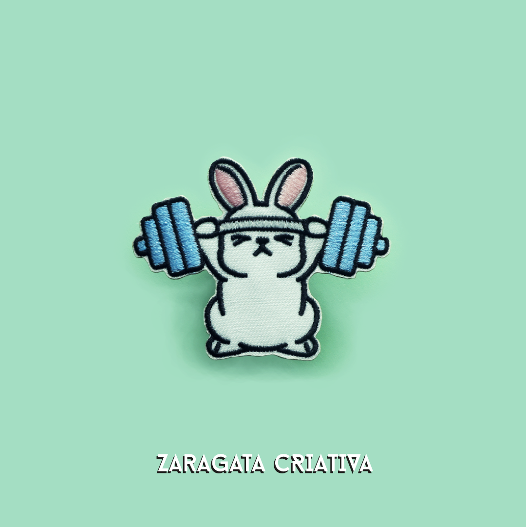 • Emblema bordado de coelho a levantar barra com pesos