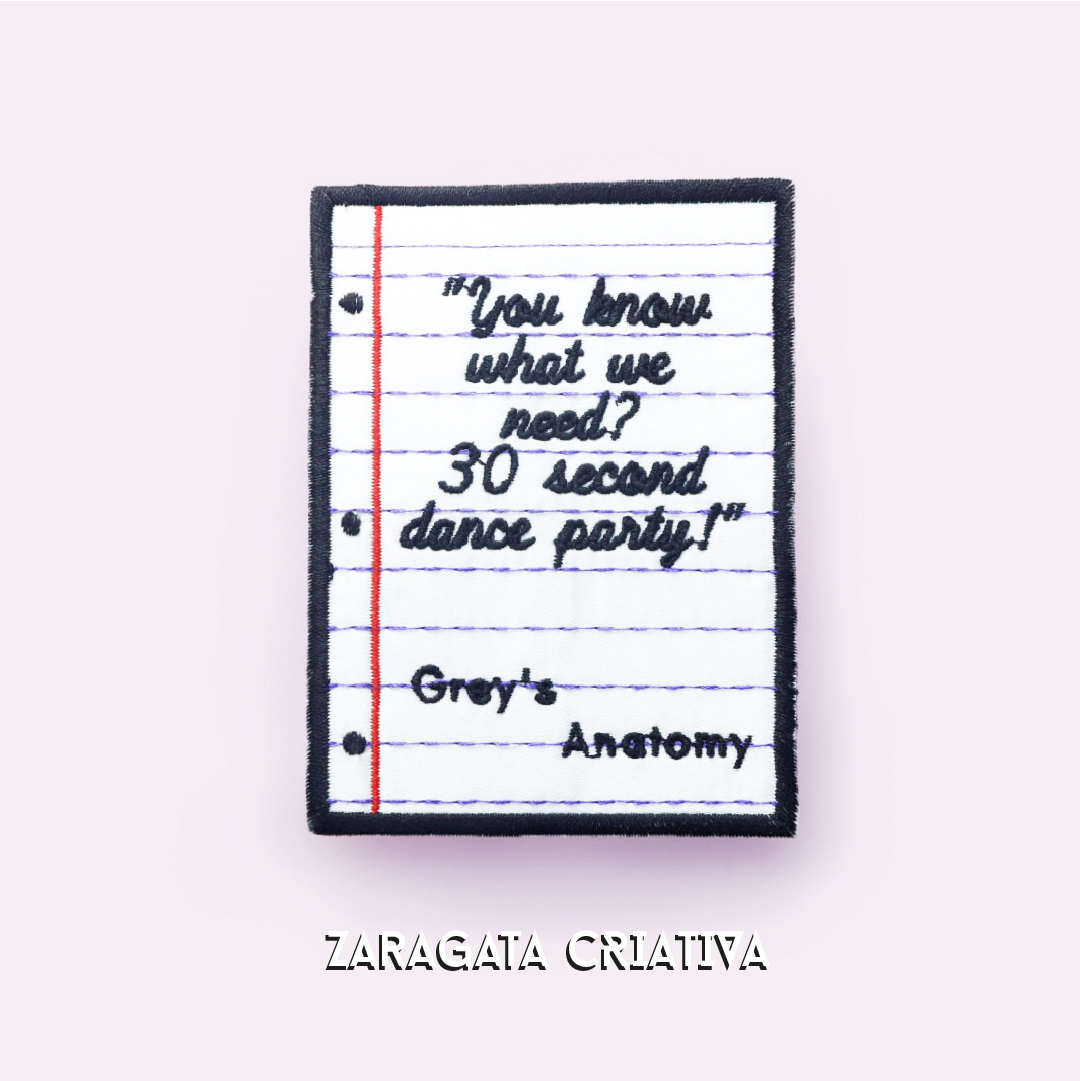 Apresentamos o emblema bordado Dance Party Anatomia de Grey, o acessório perfeito para os fãs da série de TV.