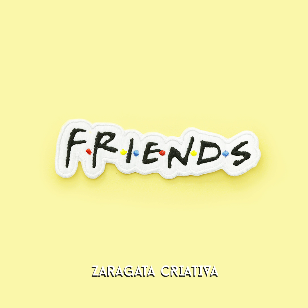 Apresentamos o Emblema Bordado Logo Friends, perfeito para fãs de séries e referências icónicas da televisão.