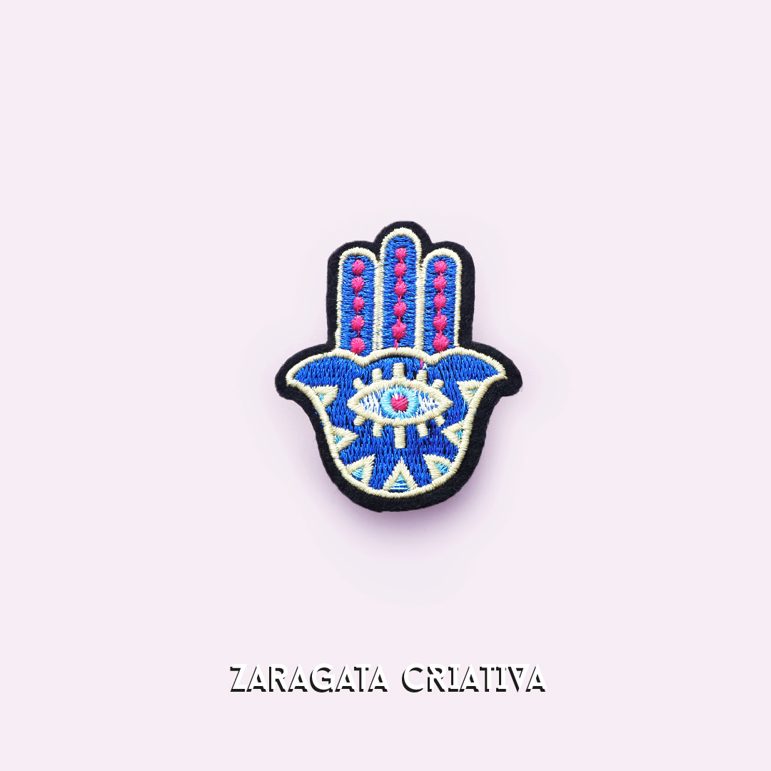 O emblema bordado Hamsa é um artigo encantador que traz proteção e sorte.
