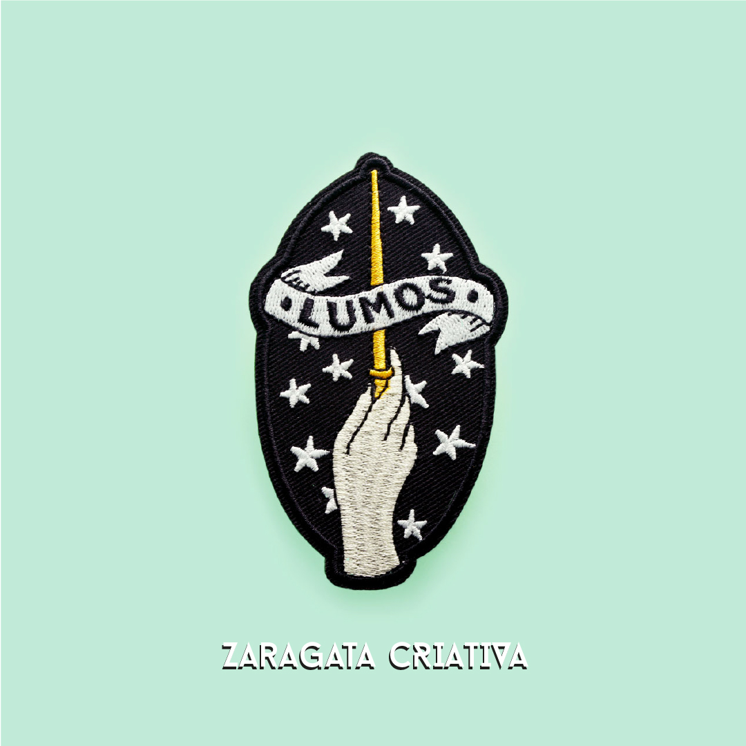 Inspirado no feitiço "Lumos Maxima" este emblema bordado é o complemento perfeito para qualquer coleção.
