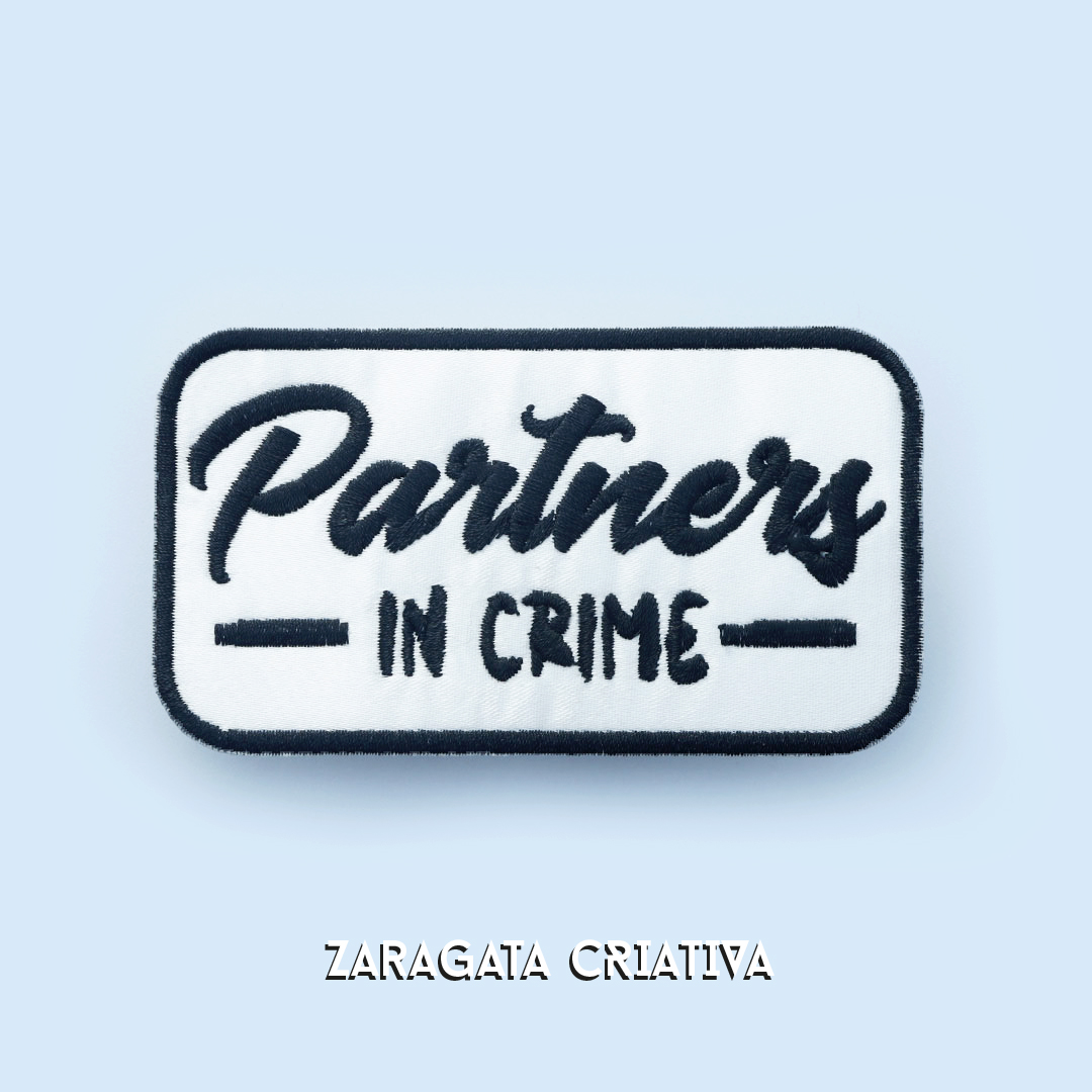 Apresentamos o emblema bordado "Partners in Crime", um acessório incrível para expressar o teu vínculo e cumplicidade com o teu companheiro(a) de aventuras.