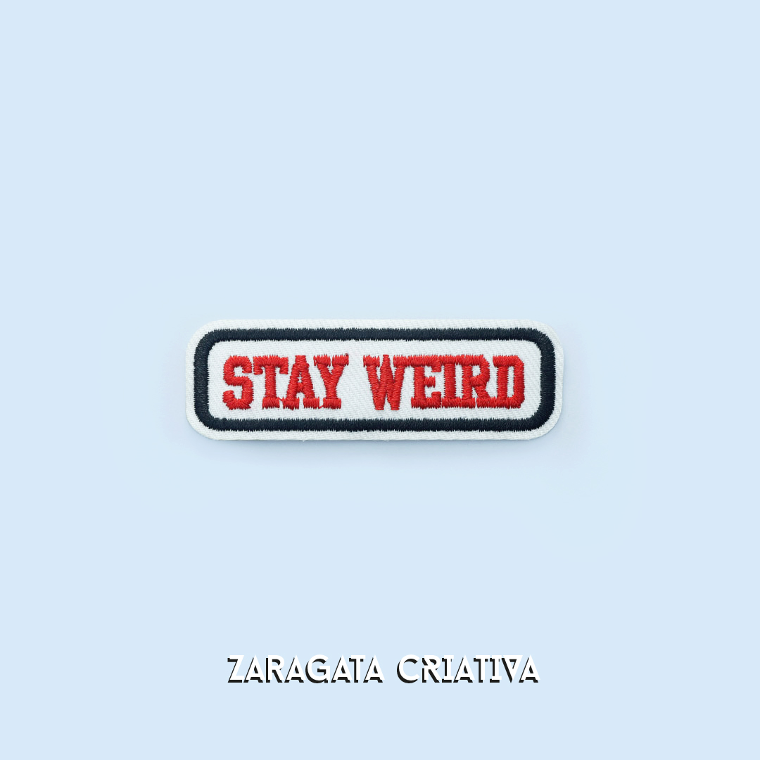 Apresentamos o Emblema Bordado “Stay Weird”, perfeito para dar um toque criativo e irreverente ao teu dia.