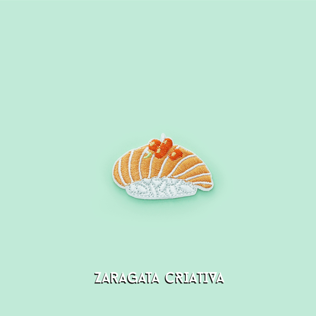 • Emblema bordado com sushi de salmão e ovas sobre fundo verde