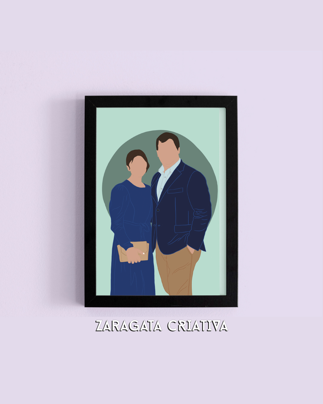 Ilustração de casal num quadro com moldura preta