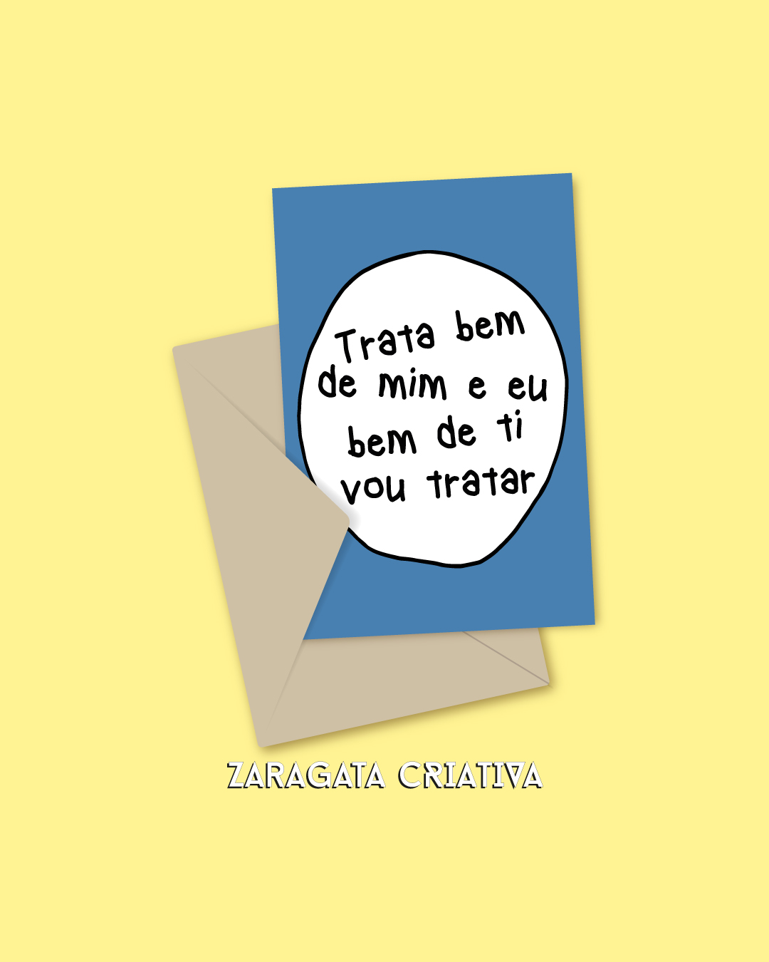 Postal Trata bem de mim 3,99 € Desconto de %. Partilhar Compra este produto e ganha 39 Pontos! +Info 👀 Comprar Contactar SKU: PZC0017 Postal impresso com ilustração desenhada através de técnica digital. ℹ️ Envelope não incluído. Marca Zaragata Criativa® Tags FrasesAmorNamoradaNamoradoNamoradosNamoradasS. ValentimDia dos namorados Tamanho: A6 Tipo de artigo: Postal impresso em papel Disponibilidade: Disponível para envio em 48h* Material: CLA 320g